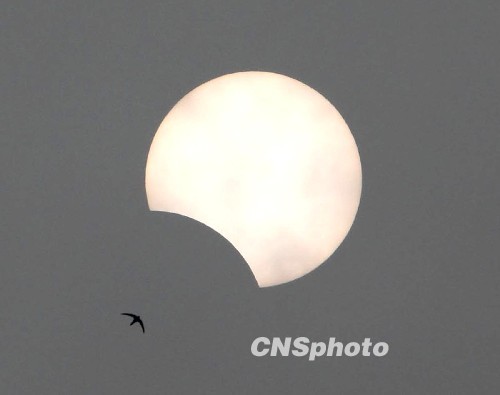 中國(guó)各地觀測(cè)日食奇觀:北京上空燕子陪伴日偏食