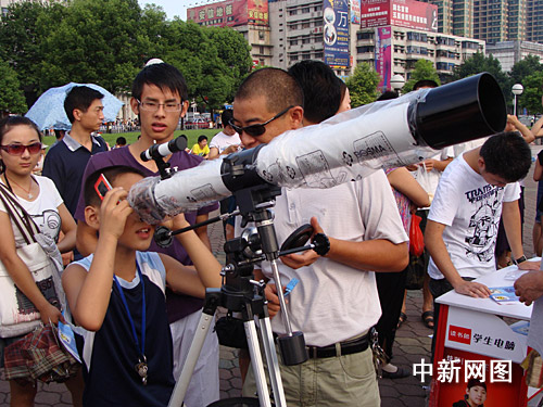 圖:重慶市民聚集科技館探秘日全食奇觀(2)