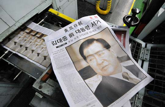 韓國媒體關(guān)注前總統(tǒng)金大中逝世消息