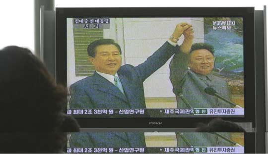 圖:朝鮮吊唁團(tuán)在金大中靈堂進(jìn)行吊唁
