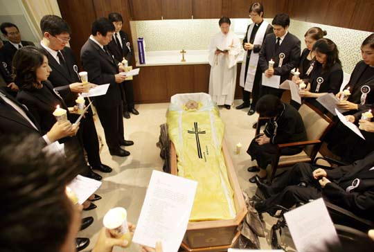 圖:韓國前總統(tǒng)金大中入殮儀式舉行