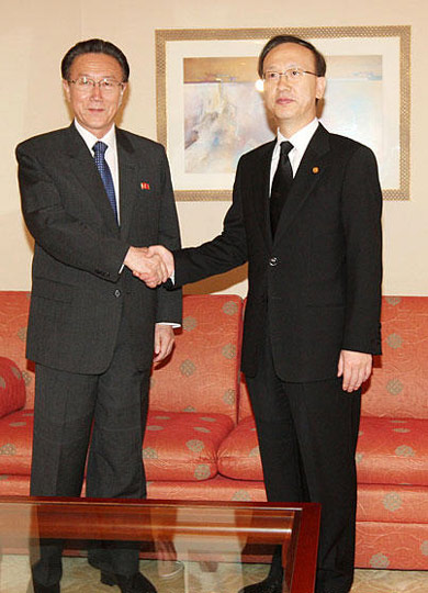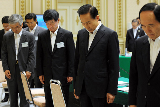 圖:韓國總統(tǒng)李明博會見朝鮮吊唁團(tuán)