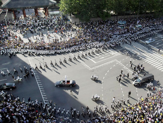 韓國前總統(tǒng)金大中葬禮舉行 民眾沿路送別