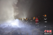 救援人員在飛機(jī)殘骸邊展開救援工作