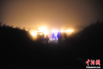 圖:救援人員在飛機(jī)失事現(xiàn)場待命
