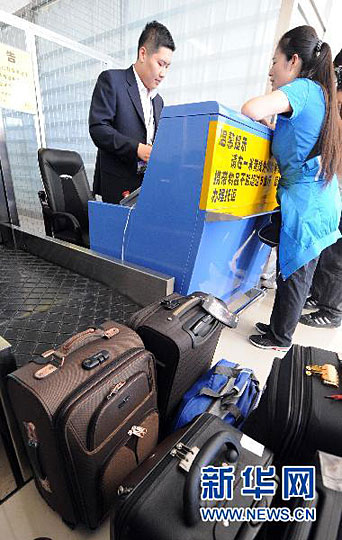 圖:伊春機(jī)場乘客在辦理登機(jī)手續(xù)