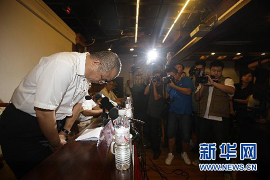 圖:河南航空公司監(jiān)事會主席鞠躬致歉