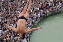 圖:法國(guó)"懸崖"跳水賽 選手比技巧拼勇氣