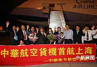 兩岸首班專案貨運包機——臺灣“中華航空公司”CI六九○一航班于二00六年七月二十日凌晨零時三十三分飛抵上海浦東機場。該首航貨機于十九日晚間在臺灣桃園機場起飛,歷經(jīng)二個半小時航程,抵達上海,機型采用波音七四七—四○○型全貨機。該專案貨機的航線,與此前兩岸春節(jié)客運包機的航線相一致,由于仍需繞道飛經(jīng)香港航管區(qū)上空,因此尚非真正意義上的兩岸直航。據(jù)了解,本次專案貨運包機搭載的是在滬辦廠的臺商為擴大產(chǎn)能而托運的機械設(shè)備和相關(guān)器材。業(yè)內(nèi)人士分析,兩岸貨運包機的實現(xiàn),一定程度上能夠滿足臺商特別是高科技廠商在大陸投資的實際需求,有利于提升這些企業(yè)在國際市場上的競爭力。與此同時,這也是兩岸空中通航在原有基礎(chǔ)上又邁出的新一步。<點擊進入組圖> <詳細報道>