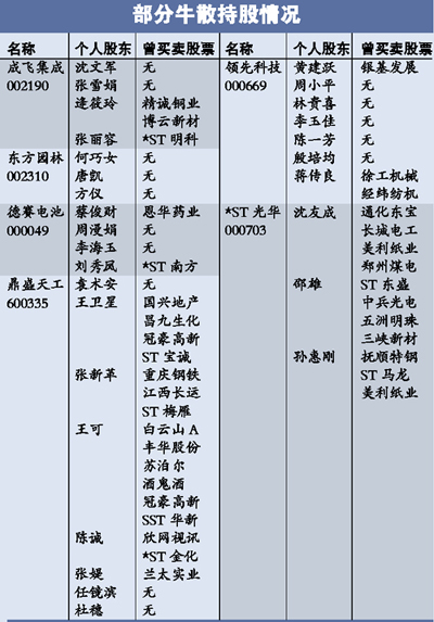 前期的牛散劉芳、葉晶、黃木順、鄒瀚樞和錢小妹等,盡管受到的關(guān)注減少,但并未從上市公司中消失。半年報(bào)顯示,劉芳和葉晶又雙雙介入澳洋順昌,分別持有147萬(wàn)股和89萬(wàn)股。錢小妹則押寶南洋科技和漢王科技。