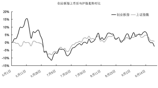 整體上看,至第23批創(chuàng)業(yè)板股上市的9月17日,創(chuàng)業(yè)板已開(kāi)板220個(gè)交易日,即平均每1.83個(gè)交易日即有1股上市。(表2)