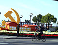 組圖:天安門(mén)廣場(chǎng)吊裝巨型標(biāo)語(yǔ)牌的新景觀