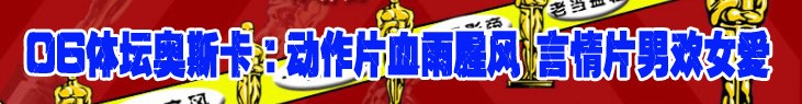 最佳紀錄片:退役明星《王的男人》 最佳影片:退役明星《王的男人》 終身成就獎:退役明星 頒獎詞:當2006年的秒針走向最后一刻時,在我們記憶里揮不去的是那些王者的背影!败囃酢笔骜R赫將風(fēng)中的紅色身影收起,“球王”齊達內(nèi)停下曼妙的舞步,網(wǎng)球之王阿加西最后一次把親吻獻給觀眾,“大腳王子”索普再也劈不開綠池的碧波……再見了,我們的王者、我們的神,我們會懷念那些你們帶來的難忘歲月,深鎖住你們鑄就的傳奇故事。就算是卡特里娜颶風(fēng)也帶不走腦中的思緒,就算是印度洋海嘯也沖不掉心中的悸動。 在新年的鐘聲敲響時,讓我們帶著崇敬的心情向那些曾給我們無數(shù)感動的人道別:再見了,王者! |