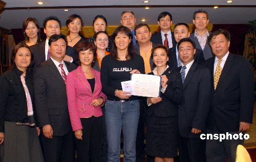 著名中國女排運(yùn)動員,現(xiàn)任美國女排主教練郎平,十月二十日將赴新澤西州參加美國奧委會的一個頒獎活動,十月十九日郎平取道紐約,受到此間北京鄉(xiāng)親和僑界的熱烈歡迎。紐約州眾議員楊愛倫(前右三)向郎平(前左四)頒發(fā)感謝狀,表彰她為中美兩國女排作出的貢獻(xiàn),并向郎平贈送了她選區(qū)(發(fā)拉盛)的“護(hù)照”。前左三為紐約北京同鄉(xiāng)會會長侯建利。中新社發(fā) 龔文謨 攝