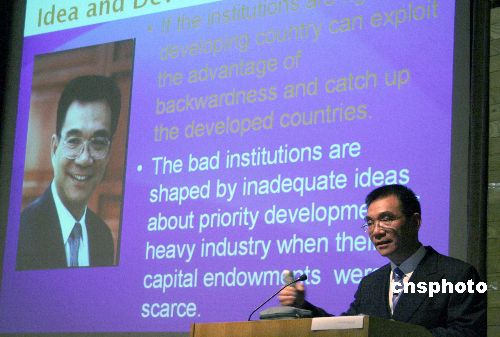 世界頂級(jí)經(jīng)濟(jì)學(xué)講壇之一的劍橋大學(xué)“馬歇爾講座”每年邀請(qǐng)一位世界著名經(jīng)濟(jì)學(xué)家擔(dān)任主講人,北京大學(xué)中國(guó)經(jīng)濟(jì)研究中心林毅夫教授作為首個(gè)中國(guó)學(xué)者今年應(yīng)邀主講。中新社發(fā) 李鵬 攝