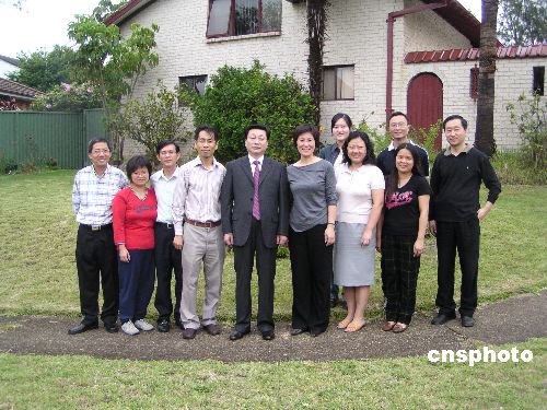 中國國務院僑務辦公室副主任馬儒沛(左五)三日在悉尼與風華中文學校老師與家長代表座談后,與他們合影。中新社發(fā) 葛明 攝