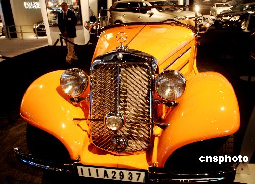在洛杉磯舉辦的二00七北美國際車展上,一輛奔馳和一輛寶馬老爺車向參觀者述說著百年汽車文化傳承至今的變遷歷史。中新社發(fā) 賈國榮 攝