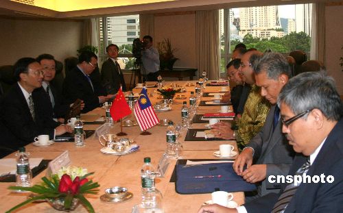 十二月八日傍晚,中國外長楊潔篪(左一)同馬來西亞外長賽義德在吉隆坡東方文華酒店舉行會談,雙方討論了雙邊關(guān)系和共同關(guān)心的國際和地區(qū)問題,就兩國今后合作達(dá)成多項(xiàng)共識。中新社發(fā) 蘇祥新 攝