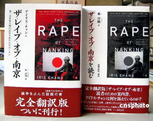 在“南京大屠殺”事件70周年之際,美籍華裔女作家張純?nèi)绲臍v史著作《南京大屠殺》日文譯本終于在日本出版發(fā)行。該書由在日華僑巫召鴻翻譯、日本同時代社出版。除了張純?nèi)缭g本以外,《解讀<南京大屠殺>》同時出版,詳細介紹了《南京大屠殺》日文版歷經(jīng)10年才得以面世的經(jīng)過。中新社發(fā) 段躍中 攝