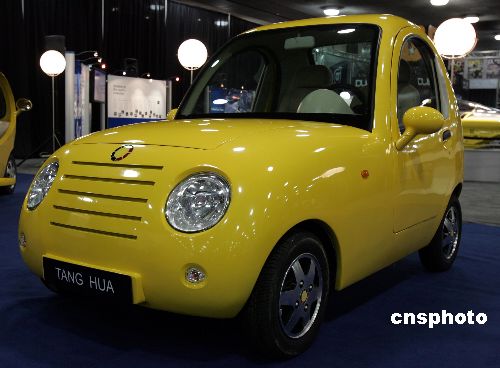 當(dāng)?shù)貢r間1月14日,一款名為“詩經(jīng)”的迷你電池車在2008北美車展上與國際名車同臺展示。這款由中國民營企業(yè)推出的迷你電池車,以中國文化和環(huán)保為理念,首次赴北美參展,由此希望進(jìn)軍北美和歐洲市場。中新社發(fā) 潘索菲 攝