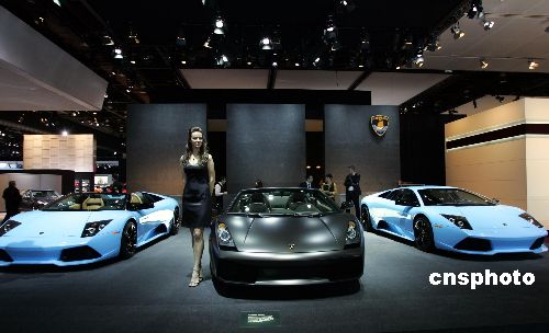 當(dāng)?shù)貢r間1月14日,蘭博基尼在底特律北美車展上彰顯個性,高雅醒目的色彩和奢華的內(nèi)廂配置,吸引了眾多媒體關(guān)注。中新社發(fā) 潘索菲 攝