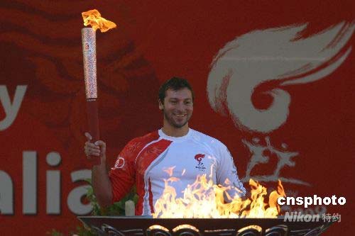 4月24日中午11時35分,澳大利亞泳壇名將、“飛魚”索普用手中的“祥云”火炬點燃圣火盆,北京奧運圣火在澳大利亞首都堪培拉的傳遞順利結(jié)束。北京奧運圣火在堪培拉的傳遞從和解廣場開始后,途經(jīng)戰(zhàn)爭紀(jì)念館、高等法院、國家圖書館、國會大廈等地,最終于中午12時左右在聯(lián)邦公園點燃圣火盆并舉行慶典儀式。堪培拉傳遞路線全長約15公里,80位火炬手,平均每人傳遞190米左右。