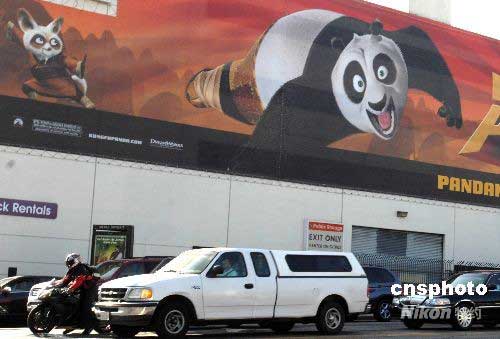 五月初,洛杉磯街頭出現(xiàn)動畫片《功夫熊貓》的大型宣傳廣告。由“夢工場”出品的好萊塢武打動畫片《功夫熊貓》將于六月六日在北美首映。該片中國味十足,杰克·布萊克、達(dá)斯汀·霍夫曼、成龍等著名影星擔(dān)綱英文版配音。制片商希望該片能成為《史萊克》系列之后的又一部締造票房奇跡的動畫片。中新社發(fā) 張煒 攝