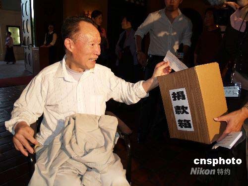圖:美國(guó)一癱瘓華裔老人為四川災(zāi)區(qū)捐款