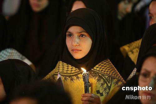5月15日晚,伊朗民眾聚集在首都德黑蘭巴勒斯坦廣場舉行紀念巴勒斯坦第60個“災(zāi)難日”活動。以色列1948年5月14日宣布建國。次日,阿拉伯國家與以色列爆發(fā)第一次中東戰(zhàn)爭,大批巴勒斯坦民眾為躲避戰(zhàn)爭而逃亡。巴勒斯坦人因而把5月15日命名為民族“災(zāi)難日”,今年是第60周年。中新社發(fā) 原丁 攝