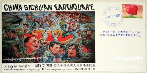 洛杉磯華人發(fā)行紀(jì)念“5.12”遇難同胞首日封