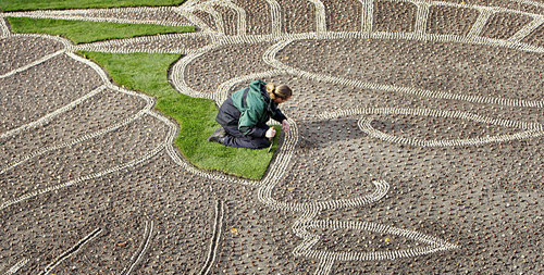 10月16日,在荷蘭利瑟著名的郁金香花園--庫(kù)肯霍夫公園,一名園丁用花球莖拼出自由女神像的圖形。這個(gè)自由女神像的拼接共使用了36000個(gè)花球莖,以此來(lái)慶祝荷蘭和紐約建立友好關(guān)系400年。