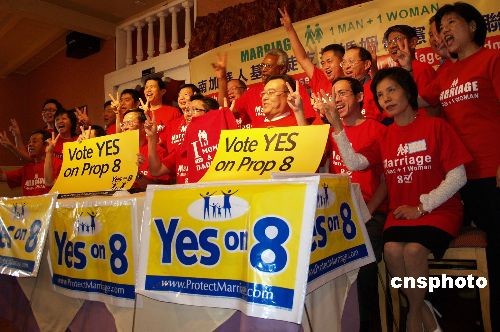 當?shù)貢r間10月16日,美國南加州華人基督徒支持加州婚姻修憲提案,倡導(dǎo)一男一女婚姻制。中新社發(fā) 盧威 攝