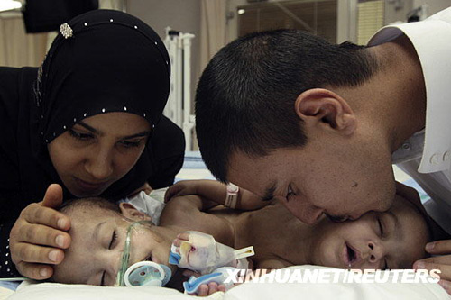 10月22日,在沙特阿拉伯首都利雅得的一家醫(yī)院,伊拉克連體男嬰齊亞德和伊亞德在熟睡中。新華社/路透