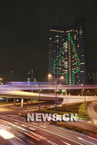 11月6日晚,日本首都東京一家酒店外墻用燈光組成一個(gè)高約100米的大型“圣誕樹(shù)”,以迎接即將到來(lái)的“圣誕節(jié)”。