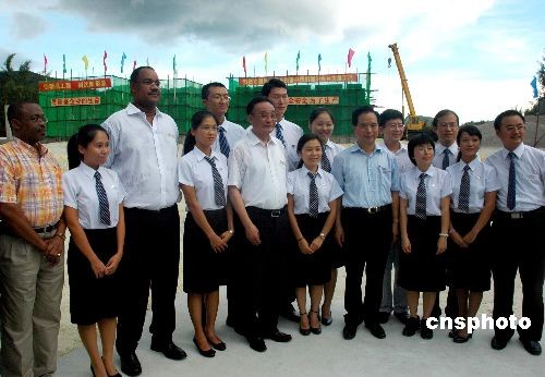 正在非洲塞舌爾進(jìn)行正式友好訪問的中國全國人大常委會(huì)委員長吳邦國,當(dāng)?shù)貢r(shí)間十一月十三日上午在維多利亞接見中國青年志愿者赴塞舌爾服務(wù)隊(duì)一行十二人。全體志愿者還現(xiàn)場演唱了隊(duì)員們自己創(chuàng)作的《中國青年志愿者赴塞舌爾服務(wù)隊(duì)之歌》。圖為吳邦國委員長與中國青年志愿者合影留念。中新社發(fā) 孫宇挺 攝