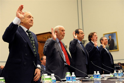 發(fā)表評(píng)論  為弄清金融危機(jī)發(fā)生的原因,尋找“對(duì)癥下藥”的政策措施,美國國會(huì)在11月13日聆訊5名久負(fù)盛名的對(duì)沖基金經(jīng)理人,調(diào)查這5名經(jīng)理人在金融危機(jī)中所起的作用。按照國會(huì)的要求,這5名經(jīng)理人向美國會(huì)監(jiān)管和政府改革委員會(huì)作證。這5名經(jīng)理人去年收入均超過了10億美元,其中包括赫赫有名的喬治·索羅斯。