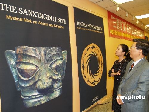 當地時間11月14日,“三星堆”與“金沙”遺存文物圖片展在美國洛杉磯舉行,展出大型文物圖片60余件,吸引當地華人華僑前往參觀。 中新社發(fā) 盧威 攝