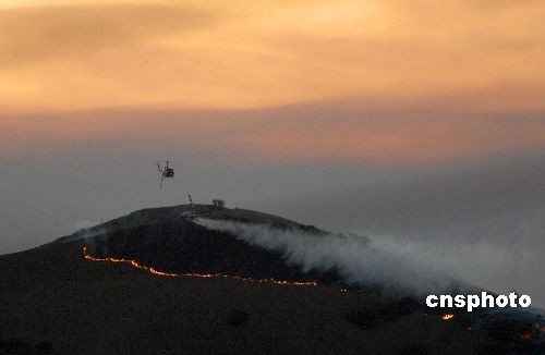 圖為消防直升機(jī)正在滅火。加州州長施瓦辛格當(dāng)天宣布洛杉磯縣進(jìn)入緊急狀態(tài)。中新社發(fā) 楊正 攝