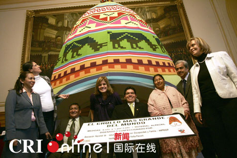 這頂帽子高6.5米,直徑3米,由秘魯國(guó)家殘疾人手工藝者聯(lián)合會(huì)的15名藝人用30種不同顏色線(xiàn),花費(fèi)18天時(shí)間制作完成。整個(gè)作品全部由秘魯特有動(dòng)物羊駝的絨毛制成。上月底,這頂巨帽曾在秘魯國(guó)會(huì)首次展出,并已經(jīng)被載入吉尼斯世界紀(jì)錄。