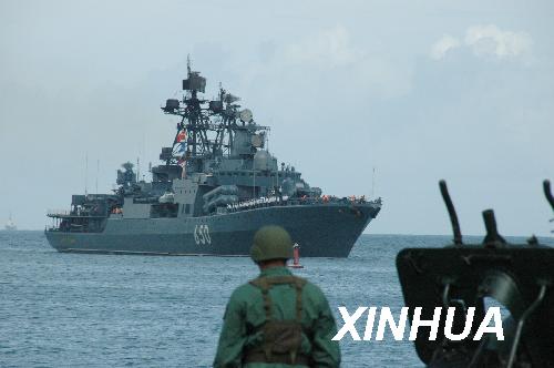 11月25日,俄羅斯“恰巴年科海軍上將”號大型反潛艦駛?cè)胛瘍?nèi)瑞拉北部港口拉瓜伊拉。俄羅斯總統(tǒng)梅德韋杰夫訪問委內(nèi)瑞拉前夕,四艘軍艦組成的俄羅斯北方艦隊艦艇編隊25日抵達(dá)拉瓜伊拉,準(zhǔn)備參加與委內(nèi)瑞拉海軍從12月1日開始的聯(lián)合軍事演習(xí)。新華社記者張笑然攝