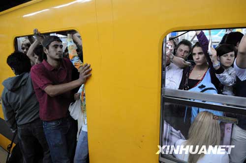12月12日,阿根廷首都布宜諾斯艾利斯的地鐵車廂內(nèi)擠滿乘客。