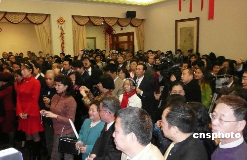 中國駐美大使周文重于當(dāng)?shù)貢r間17日晚在駐美使館華僑華人春節(jié)招待會上致辭時表示,展望處于復(fù)雜而深刻變化的二00九年,中美都面臨機(jī)遇和挑戰(zhàn),中方愿與美方一道推動中美關(guān)系穩(wěn)步發(fā)展。當(dāng)晚的招待會共有七百多名來自一百六十多個僑社的華僑華人出席。中新社發(fā) 覃展鵬 攝