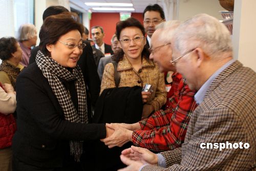 當(dāng)?shù)貢r(shí)間2月2日,率領(lǐng)“文化中國(guó)·四海同春”藝術(shù)團(tuán)正在美國(guó)訪問的國(guó)務(wù)院僑辦主任李海峰,走訪波士頓地區(qū)著名社團(tuán)華人前進(jìn)會(huì)。中新社發(fā) 魏晞 攝