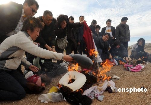 遇難者家屬焚燒紙錢和遺物,呼喚親人姓名,用中國傳統(tǒng)方式祭奠遇難親人。