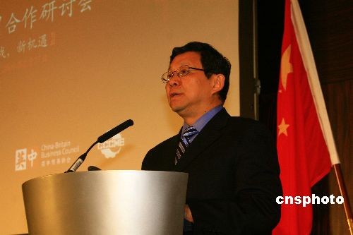 當地時間2月27日下午,中國機電進出口商會和英中貿易協會在倫敦共同舉辦中英經貿合作研討會,中英兩國企業(yè)界人士600多人與會。圖為中國商務部長陳德銘在研討會上致辭。中新社發(fā) 李鵬 攝