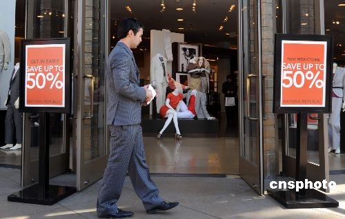 周日原本是商場人氣最旺的時候,洛杉磯市區(qū)的一家中高檔服裝店打出“最高打五折”的告示,店員在門口發(fā)放優(yōu)惠券,但店內(nèi)顧客依舊寥寥。受金融危機影響,全美失業(yè)率突破百分之八,消費者信心大受打擊,中高檔商品經(jīng)營者首當(dāng)其沖。中新社發(fā) 張煒 攝