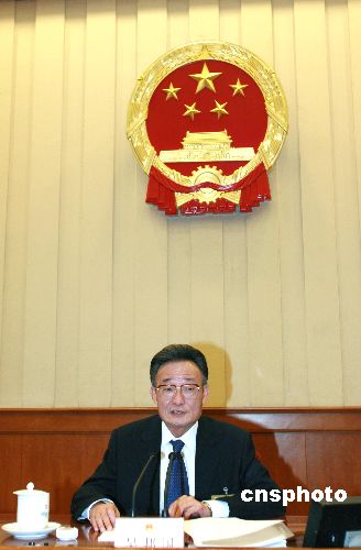十月二十八日,十屆全國(guó)人大常委會(huì)第三十次會(huì)議在北京人民大會(huì)堂閉幕。全國(guó)人大常委會(huì)委員長(zhǎng)吳邦國(guó)主持會(huì)議并講話。中新社發(fā) 廖文靜 攝
