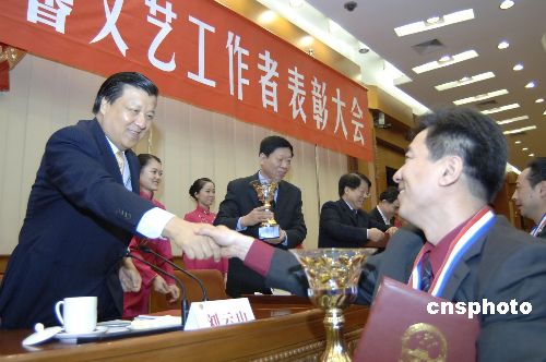 中共中央政治局委員、中央書(shū)記處書(shū)記、中宣部部長(zhǎng)劉云山出席會(huì)議并為榮獲“全國(guó)中青年德藝雙馨文藝工作者”榮譽(yù)稱(chēng)號(hào)的藝術(shù)家頒獎(jiǎng)。