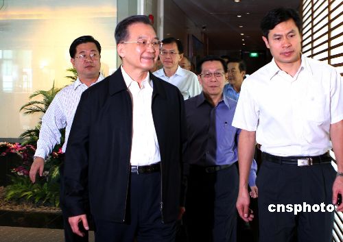 十一月二十一日上午,正在新加坡訪問并出席東亞領導人系列會議的中國國務院總理溫家寶,赴新加坡建屋發(fā)展局了解新加坡提供公共住屋的政策和經(jīng)驗,并參觀新加坡普惠性廉價房區(qū)——大巴窯組屋區(qū)。中新社發(fā) 周群 攝
