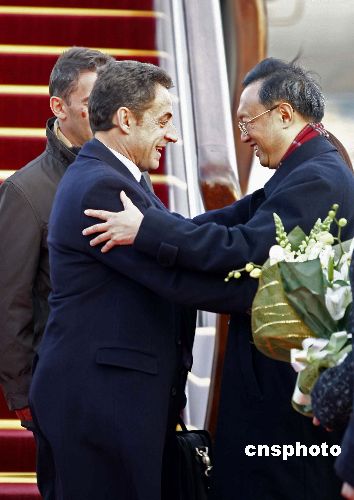 十一月二十五日,法國(guó)總統(tǒng)薩科齊乘專(zhuān)機(jī)抵達(dá)北京首都國(guó)際機(jī)場(chǎng),中國(guó)外交部部長(zhǎng)楊潔篪到機(jī)場(chǎng)迎接。中新社發(fā) 盛佳鵬 攝